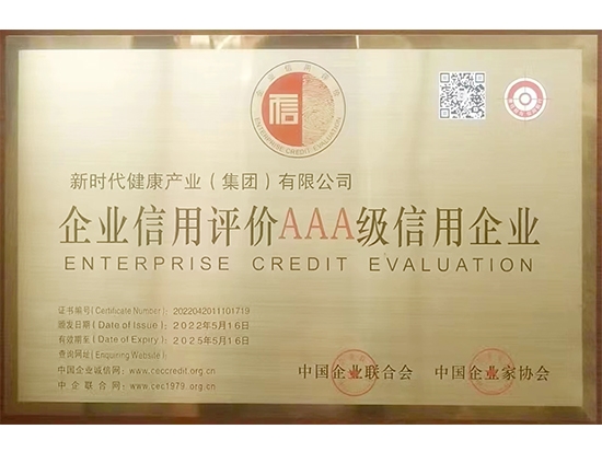 近日,中國企業(yè)聯(lián)合會、中國企業(yè)家協(xié)會(以下簡稱“中國企聯(lián)”)發(fā)布了2022年信用企業(yè)名單。新時代健康產(chǎn)業(yè)(集團(tuán))有限公司(簡稱健康產(chǎn)業(yè)公司)憑借過硬的經(jīng)營管理水平,獲評企業(yè)信用最高等級“AAA級信用企業(yè)”稱號,標(biāo)志著健康產(chǎn)業(yè)公司的服務(wù)能力、產(chǎn)品質(zhì)量、管理水平和信譽(yù)程度得到社會公認(rèn)。