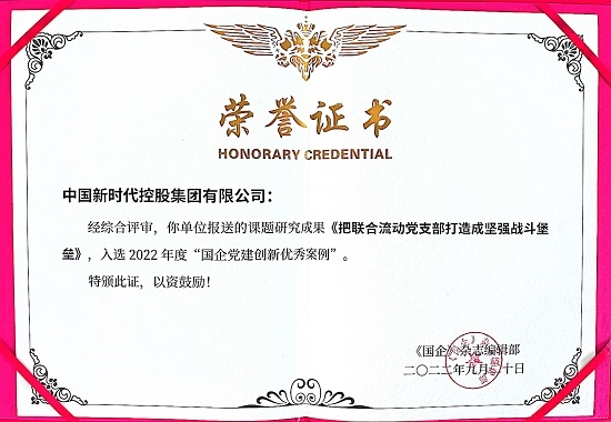 新時代集團成功入選2022年度“國企黨建創(chuàng)新優(yōu)秀案例” |