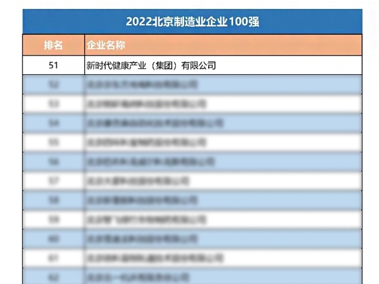 新時代集團(tuán)所屬健康產(chǎn)業(yè)公司榮登“2022北京制造業(yè)企業(yè)100強”榜單 |