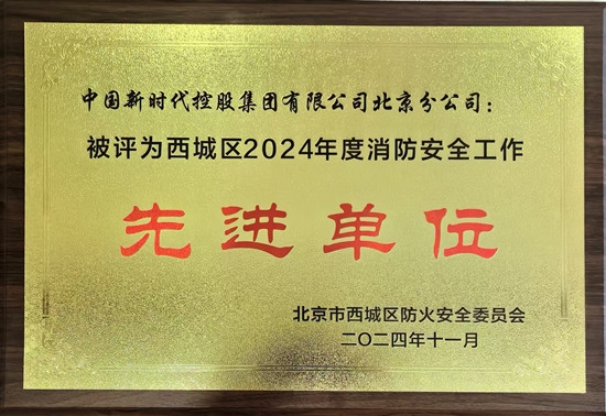 2024年11月7日,新時(shí)代集團(tuán)北京分公司榮獲北京市西城區(qū)防火安全委員會(huì)頒發(fā)的“西城區(qū)2024年度消防安全工作先進(jìn)單位”榮譽(yù)稱號(hào),這是北京分公司連續(xù)第五年獲得此項(xiàng)殊榮。